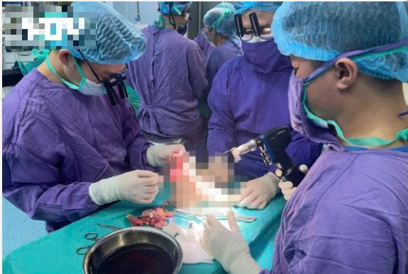 Ngay sau tai nạn, chị Đ.P được sơ cứu và nhanh chóng chuyển tới Bệnh viện Trung ương Quân đội 108 trong “thời gian vàng” – khoảng 2 giờ sau chấn thương. Trong đêm khuya, kíp y bác sĩ đã nhanh chóng tiến hành cắt lọc, xử lý tổn thương, nối mạch máu, thần kinh, gân cơ và xương. Sau hơn 6 giờ phẫu thuật căng thẳng, phần chi thể đứt rời được trồng nối thành công. Sau phẫu thuật gần 2 tuần, bệnh nhân đã khỏe mạnh và có thể cử động được các ngón chân, cho thấy kết quả phục hồi khả quan.
